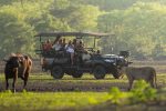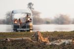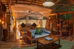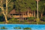 Der Hauptbereich der Lodge erstreckt sich über verschiedene Ebenen. Hoch oben unter Palmen und Bäumen liegt die Lounge mit Speiseraum, auf Flussebene ein zweiter Speiseraum und die Boma. Von allen haben Sie einen guten Blick über die Lagune – und können vielleicht das eine oder andere Tier beobachten.