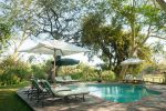 Ein hölzerner Weg über die Lagune führt Sie zu einem erfrischenden Swimmingpool mit Sonnenliegen, eingebettet zwischen Fieberbäumen.