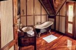 Die Suiten sind auf einer hölzernen Plattform gebaut – leicht erhöht über dem Boden, so dass man von der eigenen Veranda aus die Natur genießen kann. Jede der sechs sehr geräumigen Suiten verfügt über Schlafzimmer, separaten Wohnbereich und ein Bad mit viktorianischer Badewanne und Außendusche.