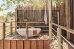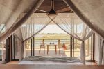 Das Schlafzimmer öffnet sich zu den großen Terrasse mit Blick auf den Boro River und das Okavango Delta. Auf der Veranda haben Sie eine Regendusch und ein „Star Bath“ für ein traumhaftes Badevergnügen zwischen glitzerndem Wasser und funkelnden Sternen am Himmel.
