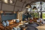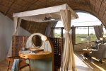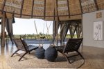 Der Stil des ökofreundlichen Camps ist eine Mischung aus zeitgenössischen Designelementen und Anklänge an klassische Safarizeiten. Mit mal filigranen, mal rustikalen Möbeln und der Verwendung von natürlichen Materialien.