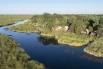 Das kleine Luxuscamp von Ker & Downey liegt am Maunachira River. Friedlich zieht der Fluss vor dem Camp dahin und zieht Vögel und Wildtiere an.