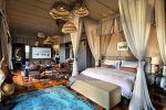 Atzaro Okavango hat acht Suiten und zwei Familiensuiten. Sie sind opulent gestaltet. Jede Suite hat ein offenes Bad mit mit Innen- und Außendusche und Badewanne. Zur Erfrischung an heißen Nachmittagen haben sie einen privaten Plungepool auf der Veranda.
