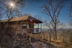 Die Chalets stehen etwas erhöht und bieten von der eigenen Veranda einen tollen Blick auf das darunter liegende Tal und das Wasserloch.