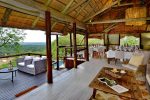 Im strohgedeckten Haupthaus von Ghoha Hills finden Sie den offenen Speiseraum, Bar und gemütliche Lounges – natürlich mit Blick auf das Wasserloch für eine „Armchair-Safari“. Zur Entspannung bietet die Lodge Pool, Fitnessraum und ein kleines SPA für Massage-Anwendungen.