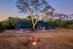 Das kleine Luxuscamp hat nur fünf Zelte, eines davon ein Familienzelt mit zwei Schlafzelten und einem gemeinsamen Bad. Alle Zelte haben ein Bad mit Außendusche. Über den Betten spannt sich ein Moskitonetz. Mit einer „Evening Breeze Air Conditioning“ wird die Luft unter ihrem Moskitonetz gekühlt, nicht aber das gesamte Zelt.