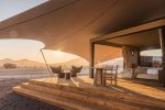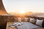 Das stilvolle Desert Rhino Camp passt sich wunderbar in die Natur ein. Sein Design ist luftig – mit großen Zeltdächern und gemauerten Wänden. Die Farbpalette nimmt die Töne des Damaralandes auf.