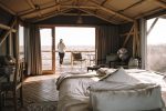 Die Zelte haben ein Schlafzimmer – die Betten von Moskitonetzten geschützt – und eine eigene Veranda. Das Badezimmer liegt in einem separaten Zelt und ist mit einem Steg verbunden.