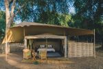 Die Zelte sind komfortabel mit bequemen Betten, einer Sitzecke auf ihrer „Veranda“ und einem privaten Bad mit Spültoiletten, fließendem Wasser und traditionellen Eimerduschen gestaltet.