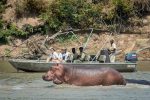 Erneut stehen Sie früh auf und unternehmen eine Pirschfahrt durch den Park zum Luangwa River Crossing Point. Das Team des Camps Tena Tena begrüßt Sie, gemeinsam setzten Sie mit dem Boot über den Fluss, dann ist es noch ein kurzer Transfer und Sie sind angekommen in Ihrer zweiten Unterkunft, dem Tena Tena Camp. Dieses abgelegene und kleine Camp liegt innerhalb des Nationalparks. Hier genießen Sie eine atemberaubende Lage an einer weitläufigen Biegung des Luangwa River. Ein Hain aus Mahagonibäumen spendet Schatten. Vom strohgedeckten Speisesaal und der Bar aus können Sie Elefanten, Flusspferde und Antilopen am Flussufer beobachten. In Tena Tena gehen Sie erneut im Geländewagen auf Safari.