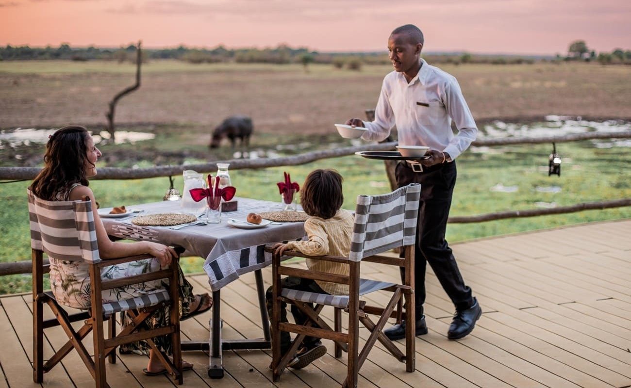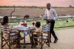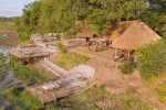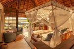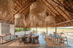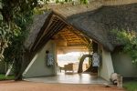 Im Zentrum der Lodge befindet sich ein großzügiger Bar- und Speisebereich. Er wurde um einen wilden Mangobaum herum gebaut und ganz traditionell mit Stroh gedeckt. Besonders schön ist die versunkene Boma, an der Sie abends am Feuer sitzend den Tag ausklingen lassen können.
