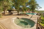 Angrenzend an das Hauptdeck befindet sich der Infinity-Pool und ein natürlicher Hot-Tub. Dieser wird von der einzigen natürlichen Thermalquelle im Luangwa-Tal gespeist und bietet eine konstante Temperatur von 38 Grad. Hier können Sie pure Entspannung genießen und gleichzeitig einen herrlichen Blick über die Überschwemmungsgebiete und den Luangwa-Fluss genießen. Für noch mehr Entspannung sorgt das kleine Fig Tree SPA, in dem Sie sich bei Massagen und Treatments verwöhnen lassen können.