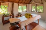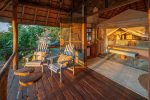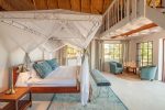 Die Safari-Chalets stehen auf erhöhten Holzplattformen und bieten Platz für zwei Personen, die Suiten haben ein gemütliches Zwischengeschoss mit zwei zusätzlichen Betten und einem offenen Balkon.