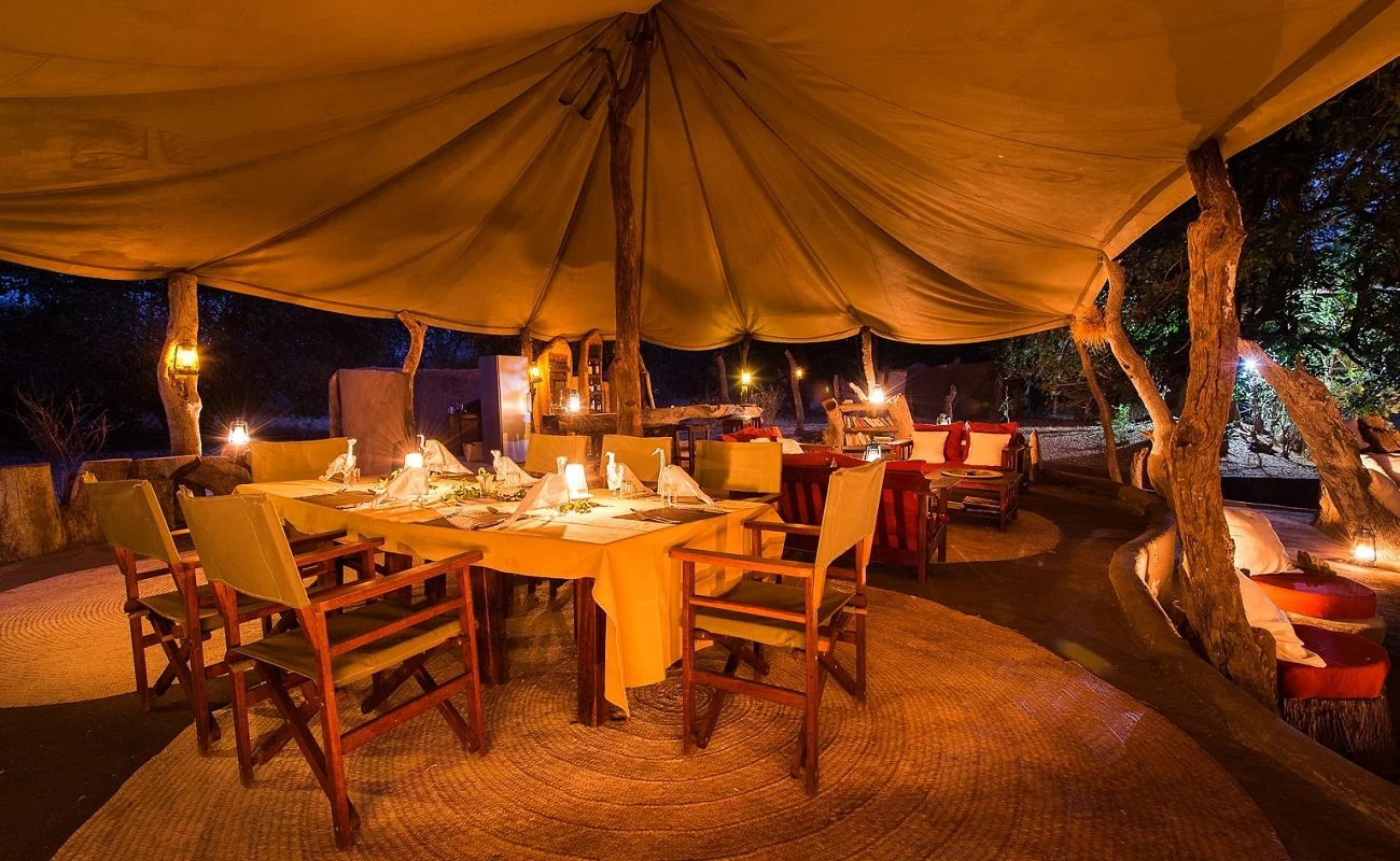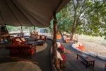 Das kleine Camp von Robin Pope Safaris liegt an einer weitläufigen Flussbiegung des Luangwa Rivers im Norden des South Luangwa Nationalparks. Es steht geschützt unter einer Gruppe von Mahagonibäumen. Der Loungebereich ist um einen alten Termitenbau am Fuß eines Baumes errichtet, ein riesiges Segeltuch das an Leadwoodstämmen aufgespannt ist, bietet Schutz. Darunter befindet sich die Bar – der Tresen ein langer Baumstamm, die Regale sind aus Mokoros (hölzernen Einbäumen) gefertigt. Davor stehen eine gemütliche Sitzgruppe und eine kleine Bibliothek, daneben der Essbereich. Etwas weiter unterhalb ist ein langgezogenes Sofa um das Lagerfeuer errichtet worden. Hier können Sie einen ereignisreichen Safari Tag in Tena Tena bei einem stimmungsvollen Abend unter dem Sternenhimmel ausklingen lassen.