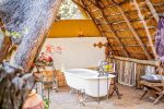 Das Main Camp von The Hide bietet in 10 Zelten Platz für bis zu 20 Gäste in zehn komfortablen und geräumigen Deluxe-, Familien-Deluxe- und Honeymoon-Deluxe-Zelten. Die Zelte haben eine Vielzahl von verschiedenen Konfigurationen mit Innen- und/oder Außenbadewannen und Duschen. Sie sind im Sommer mit einem Ventilator gekühlt und verfügen über extra warme Decken und Wärmflaschen für die kühlen Wintermonate. Jedes hat eine private Veranda, von der aus Sie das Kommen und Gehen der Tiere am Wasserloch beobachten können.