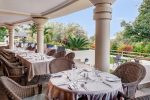 Im Cassia Restaurant genießen Sie Frühstück, Lunch und Dinner – entweder unter den Säulen des Haupthauses, oder an den Tischen im Garten.