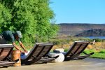 Umgeben von beeindruckenden Steinformationen, liegt Dwyka Tented. Lounge mit Kamin, Weinkeller und Boma, kleiner Spa-Bereich – all dies finden Sie im Haupthaus. Um den Gemeinschaftsbereich sind die neun luxuriösen Zelte in einem Halbkreis angeordnet. Sie haben ein privates Bad mit freistehender Badewanne, Innen- und Außendusche, auf Ihrer Veranda können Sie im eigenen Plungepool entspannen.