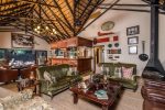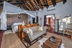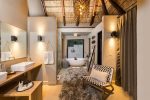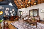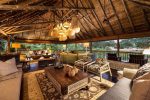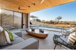 Zur Einrichtung der Lodge gehören Bibliothek, Weinkeller, Fitnessraum, eine versunkene Feuerstelle mit Blick auf den offenen Busch und die einzigartige Day Bar, in der Sie abends ein privates Dinner genießen können.