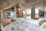 Die Rhino Ridge Safari Lodge hat 16 Zimmer für maximal 36 Gäste, die sich in die Kategorien Safari Room, Bush Villa und Honeymoon Villa unterteilen. Alle Zimmer haben Schlaf- und Badezimmer, Minibar, Klimaanlage, Deckenventilator und eine schöne Veranda. Die Bush Villen haben zusätzlich noch eine Wohnbereich mit Kamin und ein großzügiges Badezimmer mit Innen- und Außendusche. Die Honeymoon Villa hat einen eigenen kleinen Plunge Pool.