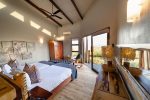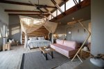Die Rhino Ridge Safari Lodge liegt auf einer Anhöhe. Weit schweift ihr Blick vom Ihrem Zimmer, dem Haupthaus oder dem Infinity Pool über das hügelige Gelände. Der Stil der Luxuslodge ist modern und doch gemütlich. Natürliche Materialien, gedeckte Farben und zeitgenössische Möbel schaffen eine ruhige Atmosphäre. Moderne afrikanische Kunstwerke setzten hübsche Akzente.