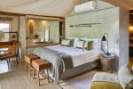 Die Marataba Safari Lodge hat 15 großzügige Luxuszelte (ca. 75 qm). Ihre Wände sind gemauert, als Dach spannt sich eine riesige Zeltwand darüber. Der Wohn- und Schlafbereich ist mit hellen, modernen Möbeln ausgestattet. Das Bad ist Luxus pur – eine freistehende Stein-Badewanne, dazu eine Innen- und Außendusche. Die Zelte haben eine private Veranda mit Blick über die Ebenen und den vor dem Camp fließenden Fluss.