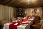 Im Zentrum des Camps steht das Messzelt mit gemütlichen Sofas und heimeligen Lampen. Hier können Sie den Tag nach einem gemütlichen Abendessen an der langen Tafel ausklingen lassen. Oder Sie setzten sich an das Lagerfeuer im Camp.