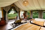 Die Zelte stehen im Schatten alter Akazienbäume. Von ihrer privaten Veranda aus schauen Sie auf die grüne Natur.