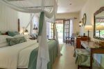 Die Garden View Zimmer liegen etwas weiter hinten in der Anlage. Von Ihrer Terrasse schauen Sie in den Garten. Die Deluxe Zimmer liegen etwas näher am Strand. Die 20 Suiten sind im ersten Stock, haben ein größeres Bad und einen großzügigen Balkon. Alle Zimmer verfügen über Klimaanlage, Kühlschrank und Safe, Terrasse oder Balkon.