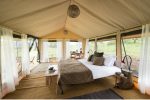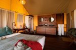 Die geräumigen Zelte sind mit hübschen Holzmöbeln bestückt, haben eine Veranda mit Blick über die Serengeti und ein privates Bad mit einer ganz typischen „Bucket-Dusche“. Sie haben einen Schreibtisch, Safe – und universelle Adapter.
