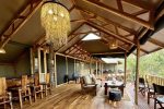 In Zentrum der kleinen Lodge steht das Haupthaus. Hier nehmen Sie im Restaurant oder auf der Veranda ihre frisch zubereiteten Mahlzeiten zu, entspannen sich am kleinen Pool mit Blick auf den Busch – und genießen laue Abende unter dem Sternenhimmel am Lagerfeuer. #