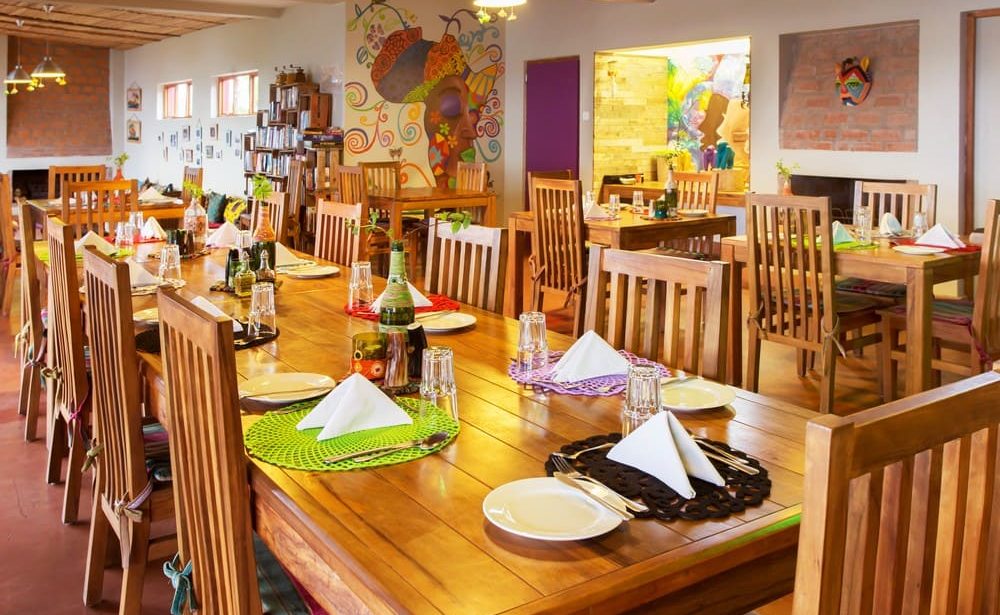 Die Lodge macht einfach gute Laune. Jedes noch so kleine Detail ist liebevoll ausgesucht und farbenfroh gestaltet. Bunte Häuschen verteilen sich in dem herrlich angelegten Garten. Im Zentrum steht das einzigartige Haupthaus mit seinen bunten, runden Türmen. Hier befindet sich auch die Lounge, das Restaurant und die große Veranda mit herrlicher Aussicht.