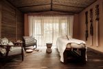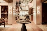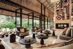 Das nachhaltige Design orientiert sich an der Umgebung, von lokalen Bautechniken und Details bis hin zu den organischen Texturen und erdigen Farbtönen – Grün, Terrakotta und Lehm – der Innenräume. Es wurden natürliche Materialien verwendet, von den gewebten Bananenblattdecken bis zu den Holzböden, und Frauen aus den umliegenden Gemeinden wurden beschäftigt, um Kronleuchter aus recycelten Papierperlen herzustellen.