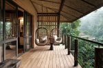 Raumhohe Fenster holen die Außenwelt ins Innere. Auf Ihrer privaten Veranda finden Sie zwei skulpturale Hängesessel aus lackiertem Holz. Von hier aus können Sie ganz entspannt Affen, seltene und wunderschöne Vögel und Schmetterlinge beobachten.
